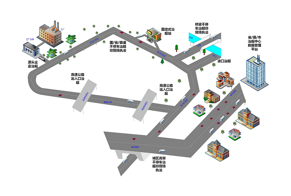 公路車輛AI治超及數(shù)字化管理平臺(tái)系統(tǒng)通過部署在高速公路出入口、高速公路省界、重點(diǎn)國(guó)省道貨運(yùn)線路、跨江跨海大橋、城市高架橋、貨源集散企業(yè)等多場(chǎng)景中,通過對(duì)貨運(yùn)車輛計(jì)量及AI分析,智能識(shí)別車輛超載違法行為,數(shù)據(jù)接入地市級(jí)、省級(jí)、部級(jí)等多級(jí)數(shù)字化管理平臺(tái)中,最終實(shí)現(xiàn)貨運(yùn)車輛治超大數(shù)據(jù)統(tǒng)一管理、統(tǒng)一使用的目標(biāo)。