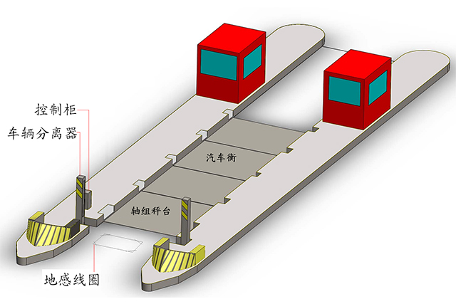系統(tǒng)主要由整車式動態(tài)汽車衡(秤體、稱重傳感器、接線盒組等)、智能輪軸識別系統(tǒng)、紅外車輛分離器(光幕)、稱重控制機柜(內(nèi)含稱重數(shù)據(jù)采集處理器以及通訊傳輸系統(tǒng))等幾大模塊組成,實現(xiàn)對車輛的軸型、輪胎數(shù)、軸重、軸組重、軸距、總重、車輛速度等核心數(shù)據(jù)進(jìn)行采集并上傳收費站或治超系統(tǒng)。